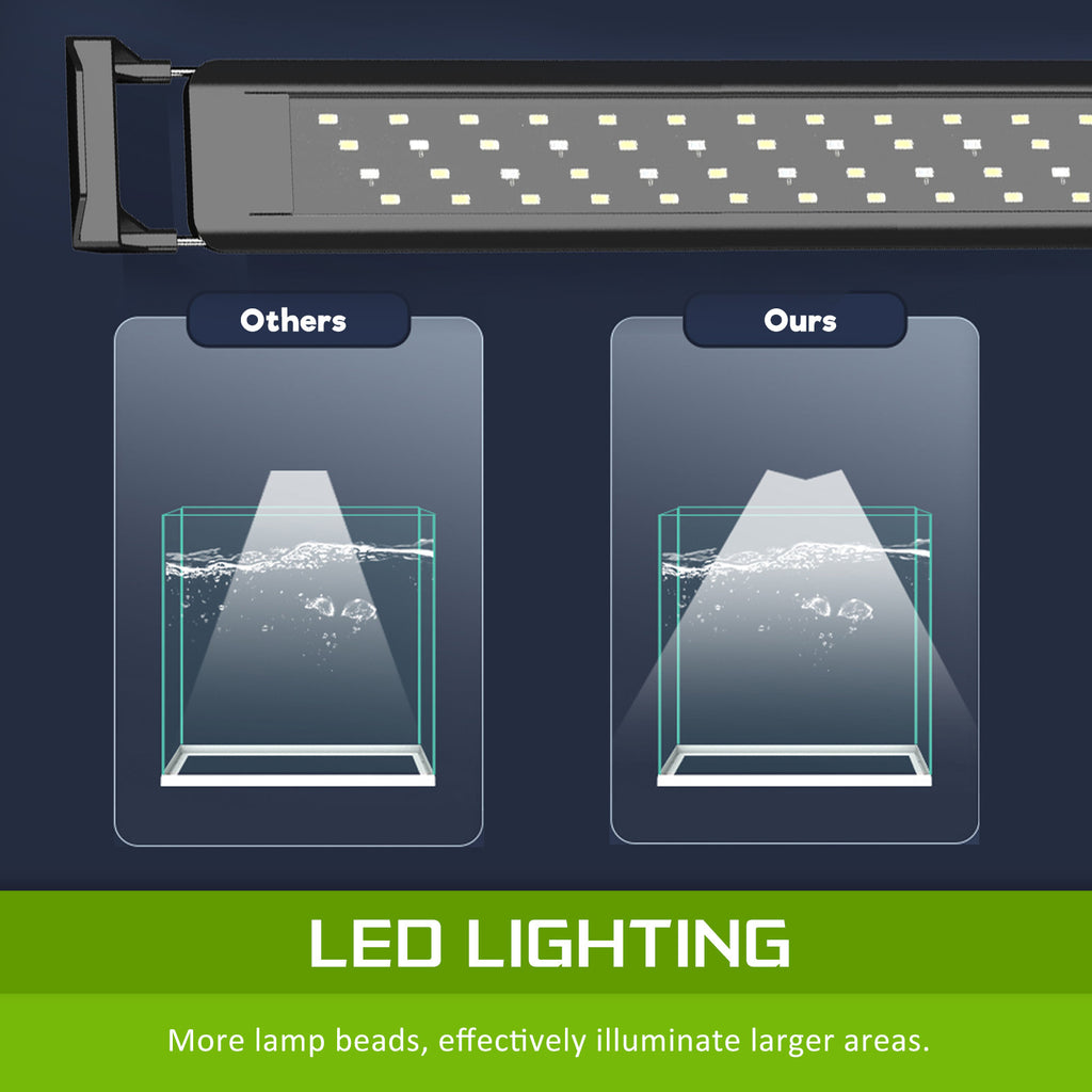 The tank is made from ultra-clear low iron STARFIRE glass with 6mm thickness and this is much more scratch resistant and clearer than acrylic fish tanks. This special glass is much clearer than conventional glass and it gives your aquarium extra clarity to trully bring your fish colour! The fish tank will look even more beautiful with your decoration inside because the LED light combined with the clear glass will enhance the colour of your aquarium environment.