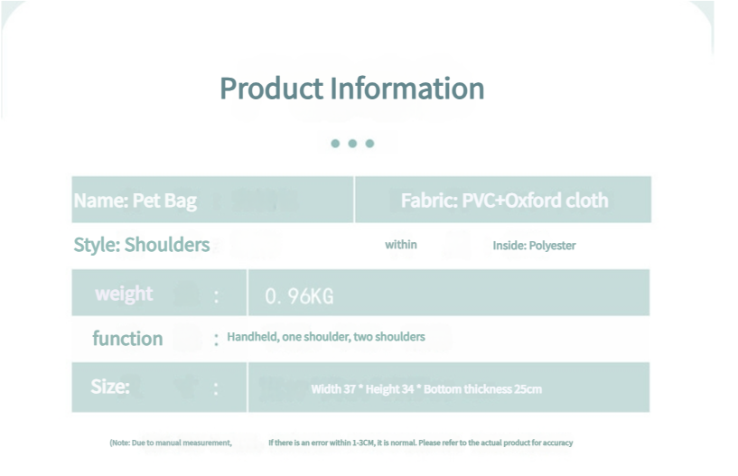 Explore the world together with your furry companion in this transparent pet carrier backpack! Designed for ultimate comfort and visibility, this spacious and breathable backpack allows your pet to enjoy the sights and sounds of your adventures while keeping them safe and secure by your side.